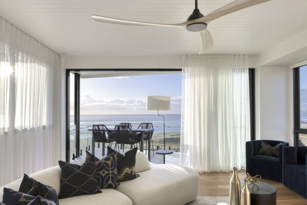 Available in generous diameters, the Sanctuary suits open plan living areas where proportion and balance are central to the aesthetic. Its broad blade span provides steady and comfortable airflow while maintaining a calm and composed silhouette. The combination of natural timber and refined performance allows the Sanctuary to function as both a practical cooling solution and a subtle design statement within Scandinavian interiors that prioritise material honesty and quiet confidence.