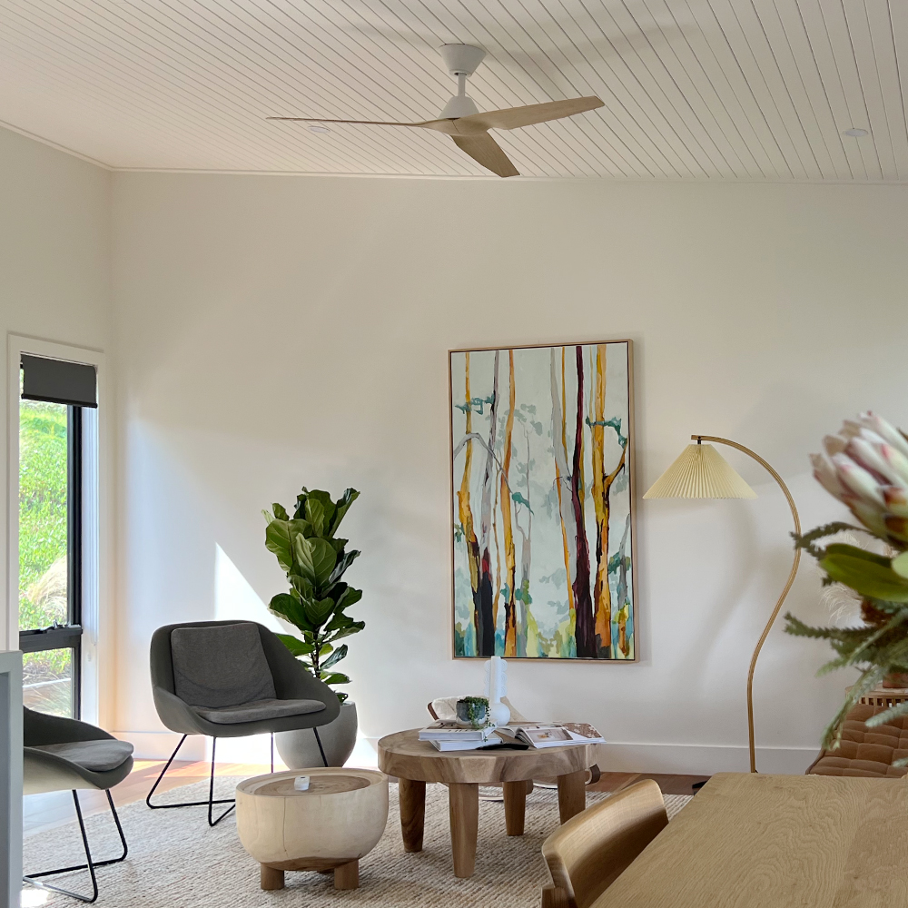 Available in white and timber look finishes, the Breeze AC integrates easily into light filled spaces while maintaining cohesion with natural material palettes. Built on reliable AC motor technology and operated via wall control, it delivers consistent airflow with practical simplicity. In Scandinavian homes where comfort, reliability and visual restraint are paramount, the Breeze AC supports the atmosphere without distracting from the calm architectural framework that defines the style.