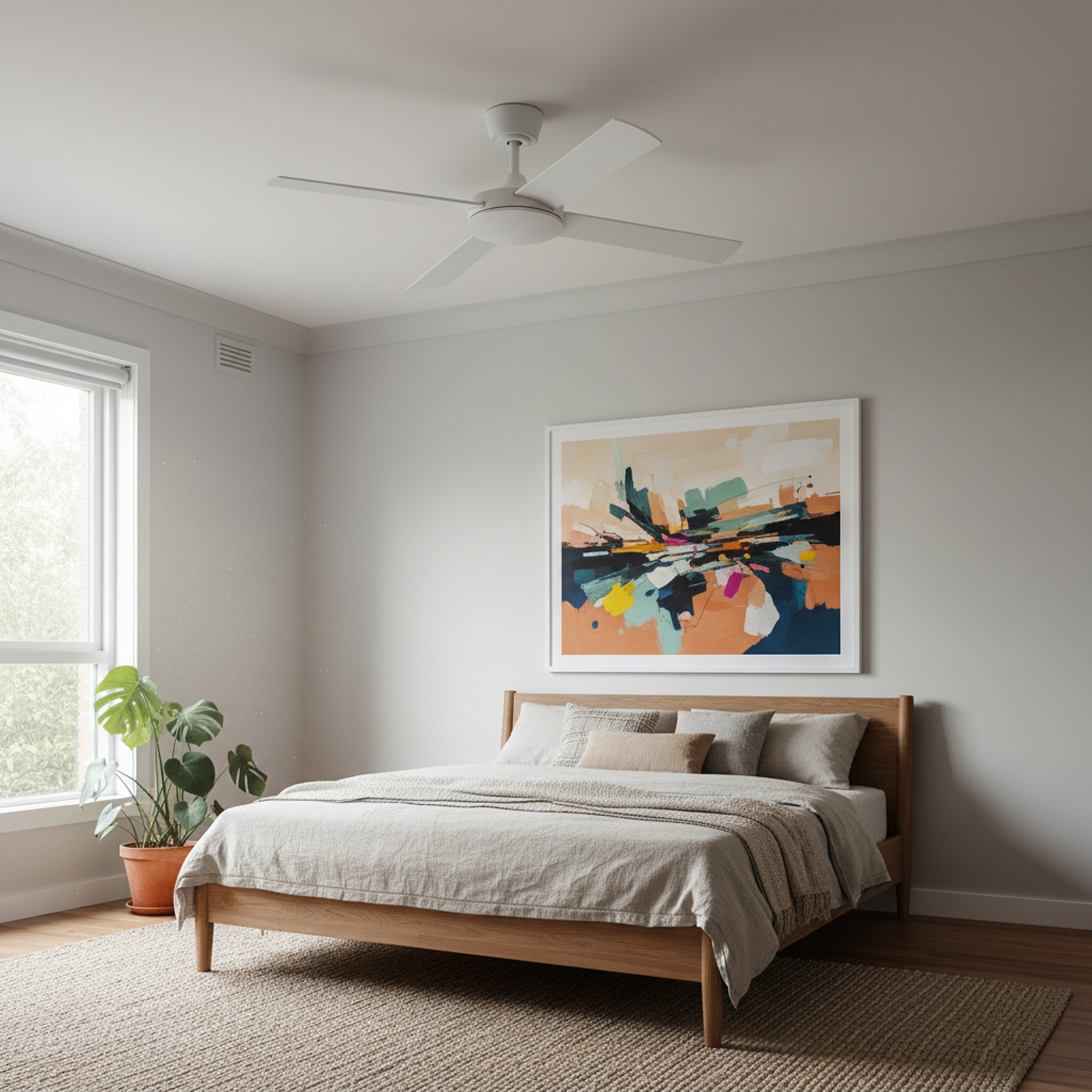 Purpose-built as an exceptionally quiet bedroom ceiling fan, the Eco Silent Pro delivers smooth, near-silent airflow that supports genuinely undisturbed sleep.