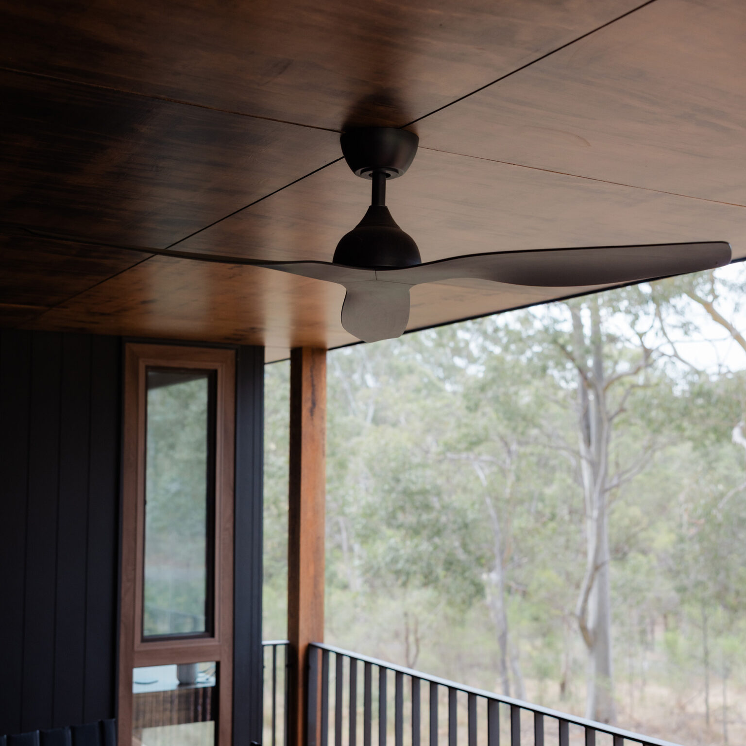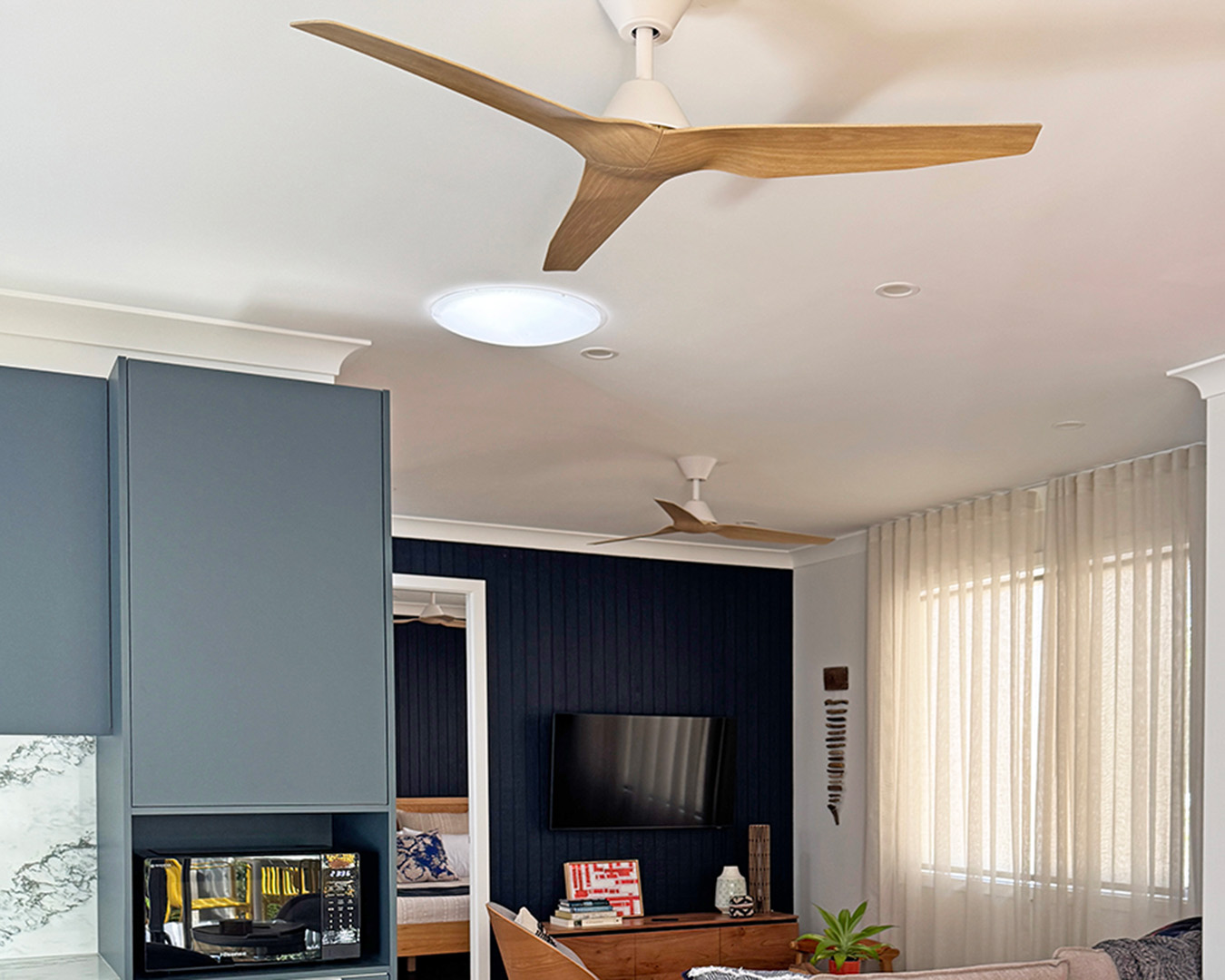 An elegant timber blade fan to improve airflow and cooling in open plan areas and covered outdoor spaces. Now available with or without LED light.
